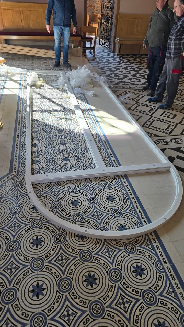 W naszym kościele następuje kolejny etap prac. Montowane są ramy w które wstawia