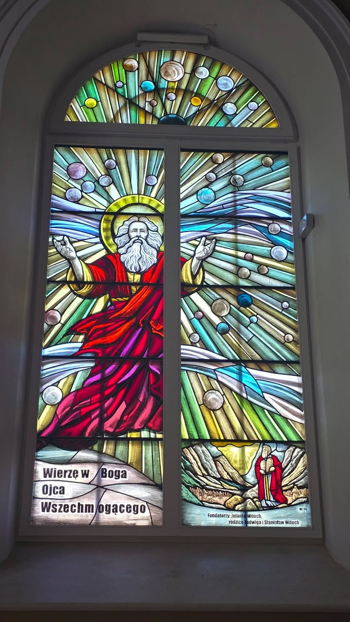 Pierwszy i drugi witraż z „Mławskiego Credo” już zamontowane w oknach kościoła. Dziękujemy witrażystom za piękne dzieło. fZobacz więcej na