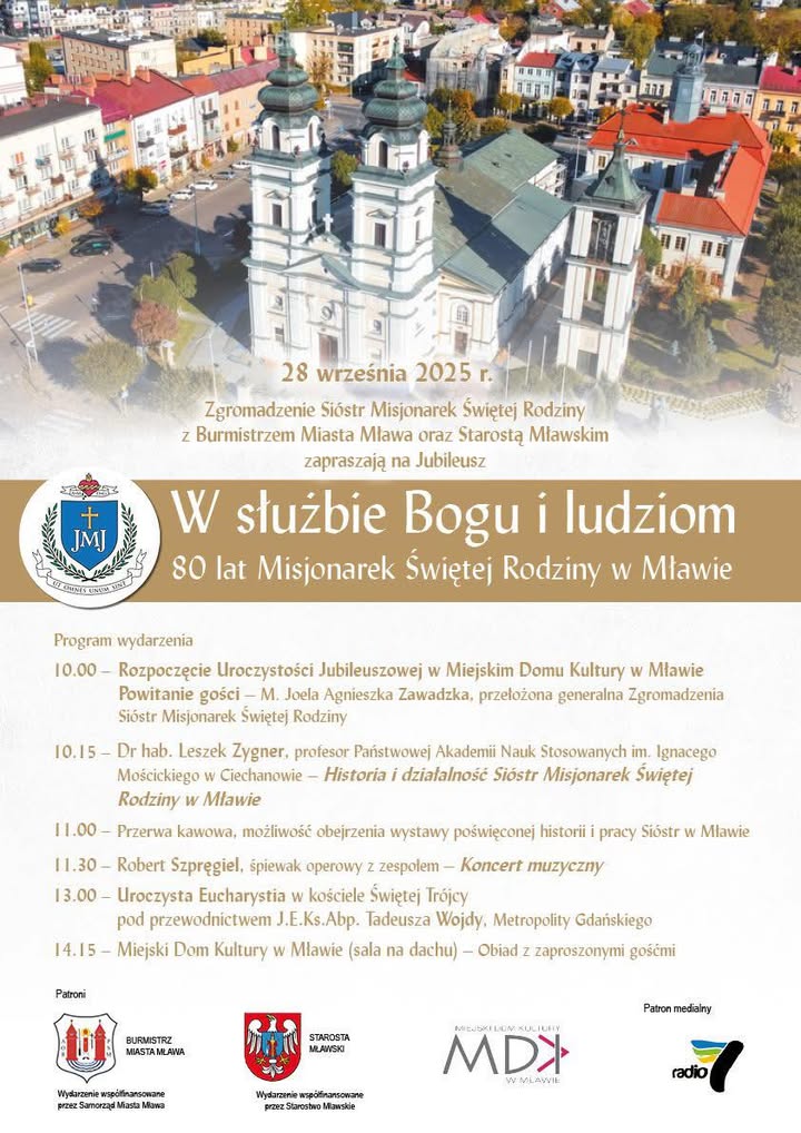 +6 Pod hasłem „W służbie Bogu i ludziom” przebiegły dziś uroczystości związane z Jubileuszem 80 lat posługi Sióstr Misjonarek Świętej Rodziny w Mławie. Mszy świętej