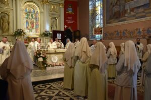 Pod hasłem „W służbie Bogu i ludziom” przebiegły dziś uroczystości związane z Jubileuszem 80 lat posługi Sióstr Misjonarek Świętej Rodziny w Mławie. Mszy świętej przewodniczył Jego Ekscelencja Arcybiskup Tadeusz Wojda – metropolita gdański oraz przewodniczący Konferencji Episkopatu Polski. Wśród zaproszonych gości były władze powiatowe, miejskie, wielu kapłanów i sióstr zakonnych, a także przyjaciele i sympatycy naszej parafii oraz zgromadzenia zakonnego, wpisanego już na dobre w społeczność naszego miasta. Bogu niech będą dzięki za te 80 lat, które podsumował abp Tadeusz Wojda w kazaniu: „Wspólnota Sióstr stała się ostoją dla wszystkich poszukujących wsparcia duchowego i życiowego”.