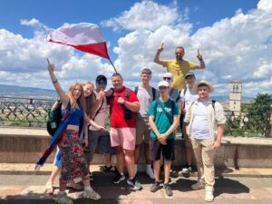 Reprezentacja młodzieży naszej parafii wraz z ks. Markiem jest w drodze do Rzymu na Jubileusz Młodych🤗 Pozdrawiamy Was serdecznie z Asyżu – miasta św. Franciszka oraz miejsca, gdzie jest pochowany Carlo Acutis 😇