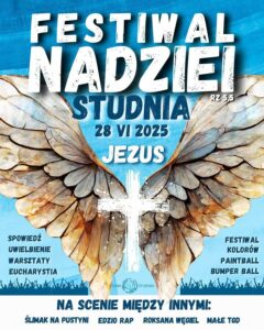 Starsze dzieci, młodzież oraz studentów zapraszamy na wyjazd do PŁOCKA na „Festiwal Nadziei” w sobotę 28 czerwca. W programie ciekawe warsztaty (psychologiczne, muzyczne, taneczne), paintball, bumperball, występ Roksany Węgiel, Edzio Rap i Małego TGD. Nie zabraknie też tego, co duchowe: spowiedzi, Eucharystii, adoracji. Wyjazd autokarem sprzed naszego kościoła. Koszt to symboliczne 10 zł. Zapisy u ks.Marek Tomasz Wiśniewski 🙌
